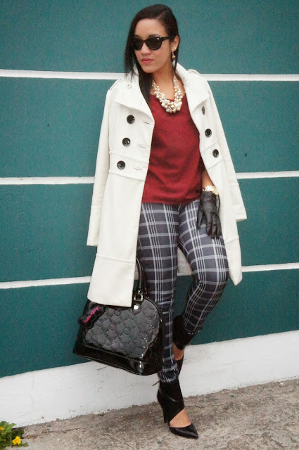 Hoy les muestro mi outfit con tendencia tartán pero en estilo "rocker chic", lo pantalones tienen una onda rockera que he intentado controlar para llevarla a un estilo mas chic. Este fue el resultado, un outfit que usé para ir a trabajar en un día un tanto frio. Y sobre el burgundy??... pues siempre hay romance con él en otoño - invierno.